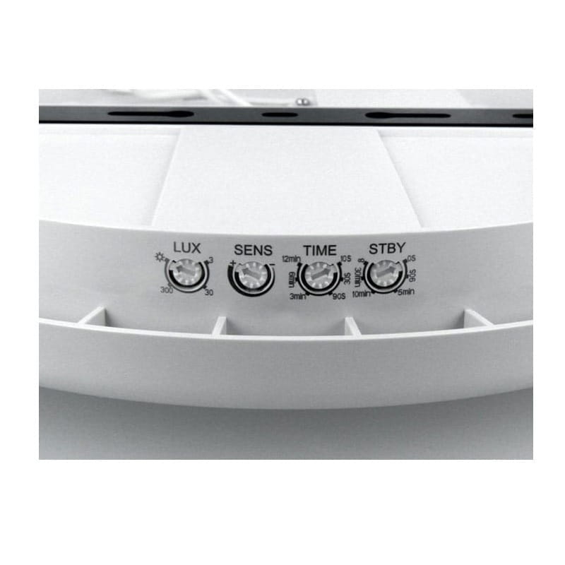 STBY: możemy nim regulować czas czuwania światła po ustaniu ruchu. Światło zostanie ściemnione do 20% i pozostanie na tym poziomie przez ustawiony czas w zakresie 2 sekund do nieskończoności